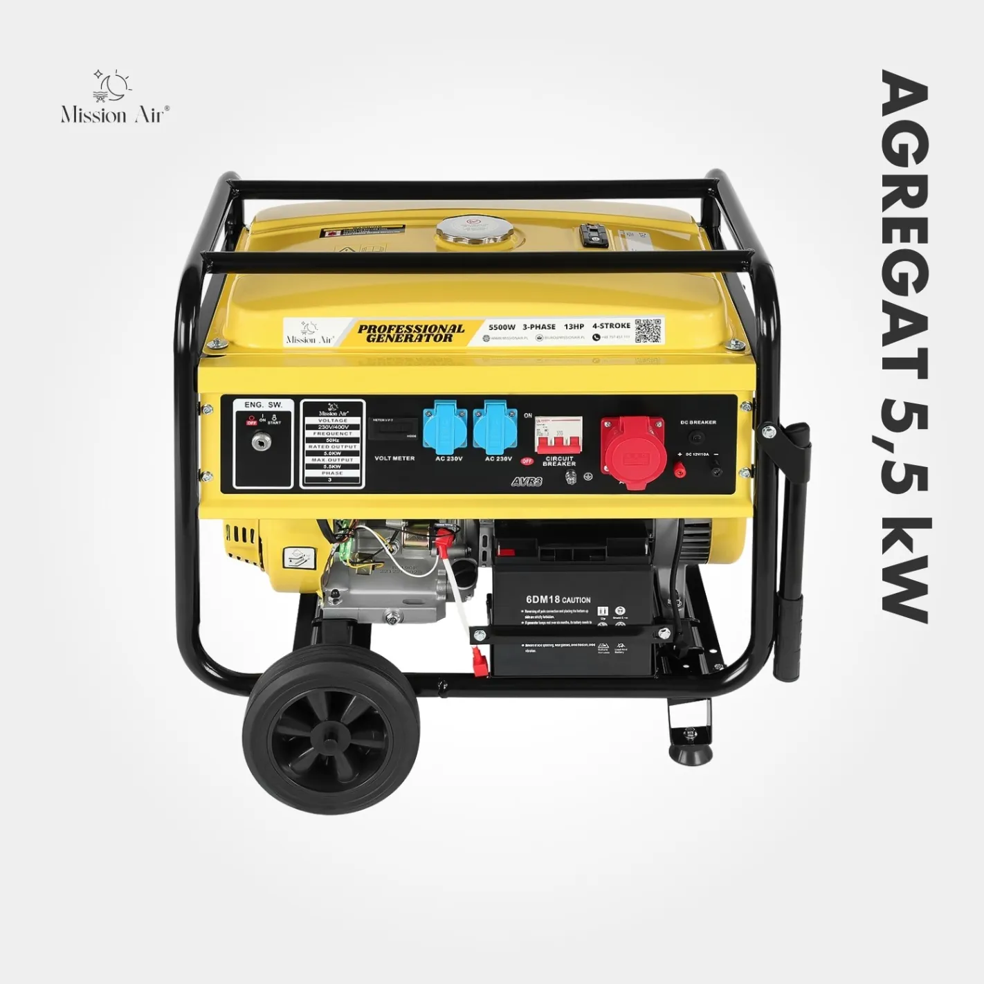 When the power goes down or the job takes you off-grid, the 5.5 kW generator keeps everything running. A robust 13 HP petrol engine delivers stable, high-output power for energy-hungry equipment — tools, appliances, machinery — without breaking a sweat.