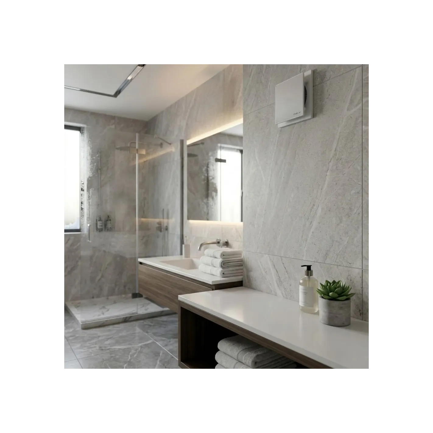 A quiet, efficient bathroom fan designed to remove moisture effectively and improve air quality in small to medium-sized rooms. The white, minimalist finish ensures it sits discreetly in any modern bathroom.