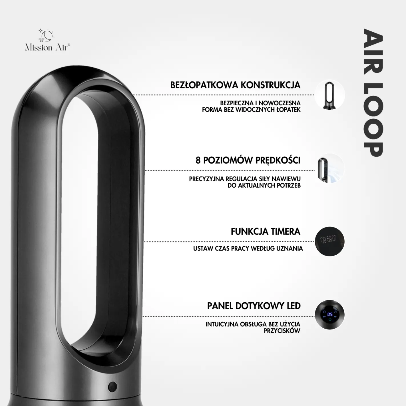 AirLoop Bladeless Fan | HEPA, 8 Speeds, 67 cm, Grey