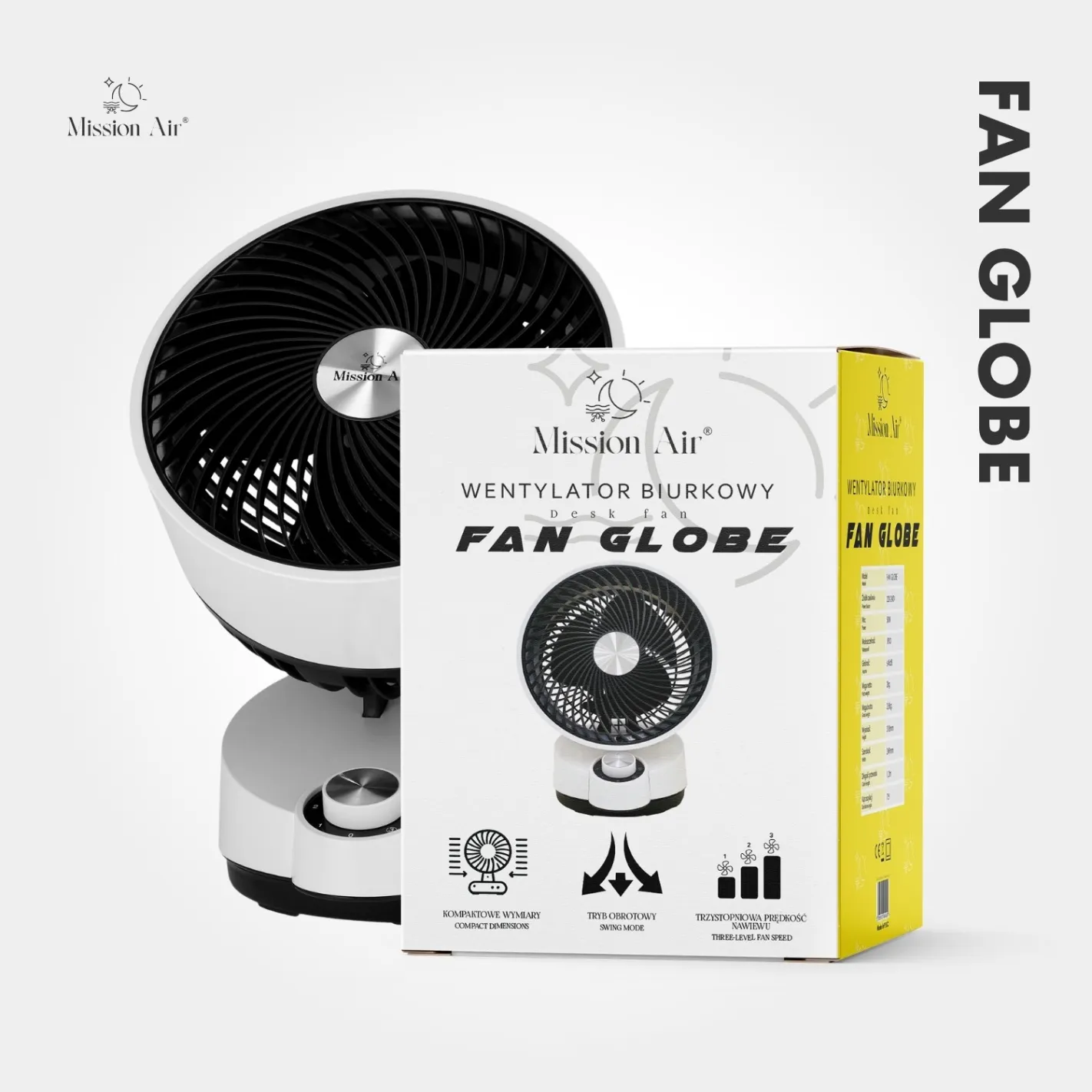 Clean white design, lightweight build, effortless to use — the FAN GLOBE is the reliable desk companion that earns its place every warm day.