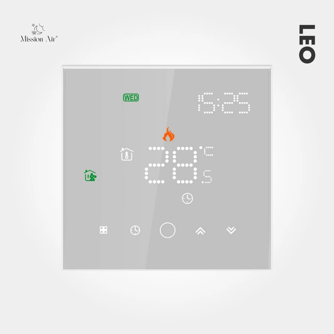 Reliable and effortlessly connected — the LEO in white is the thermostat for those who want their home to look considered in every detail.
