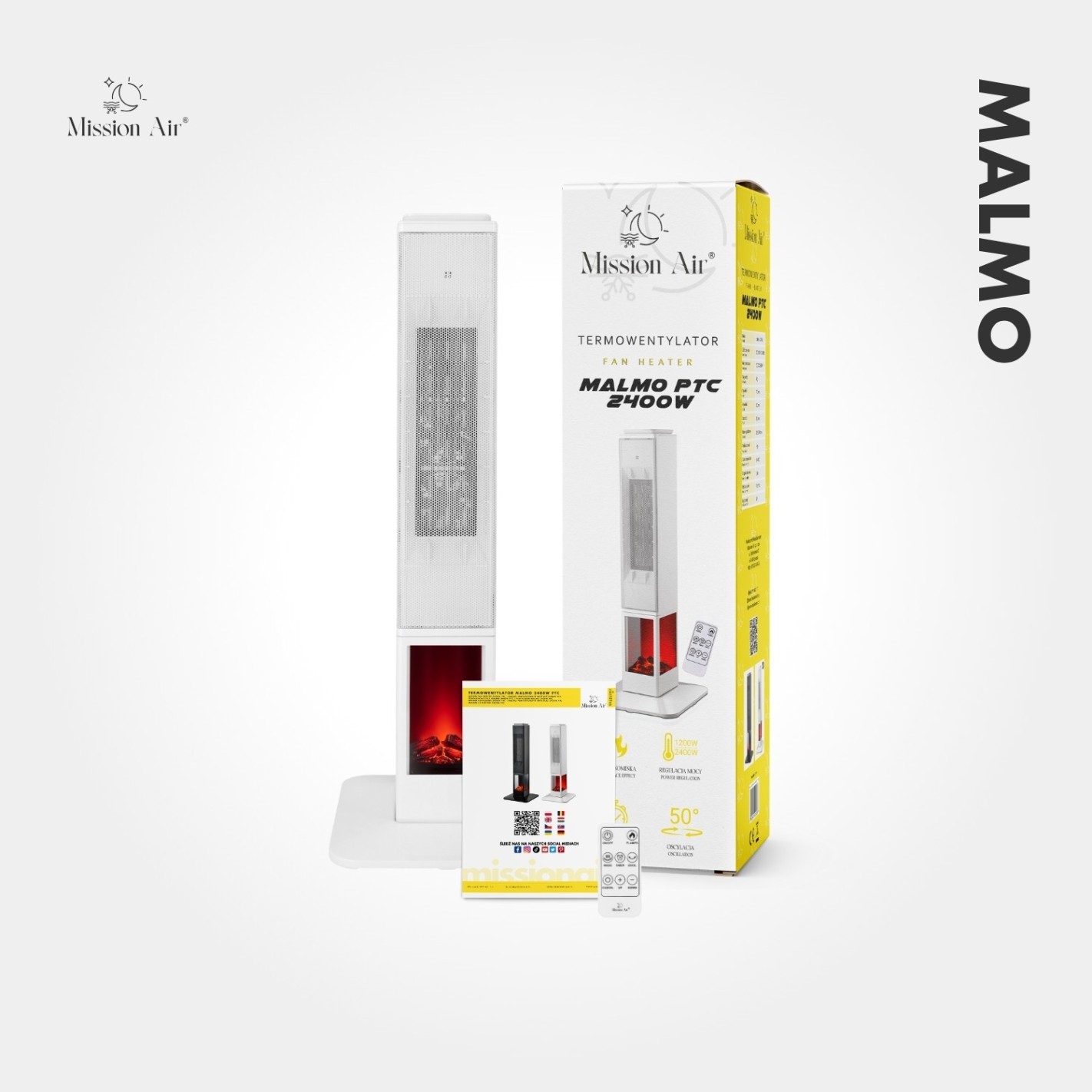 When the temperature drops and you need a room warmed quickly, the MALMO 2400 W delivers. Ceramic PTC technology heats up fast and runs efficiently, distributing warmth evenly throughout the room with smooth oscillation that leaves no cold corners behind.