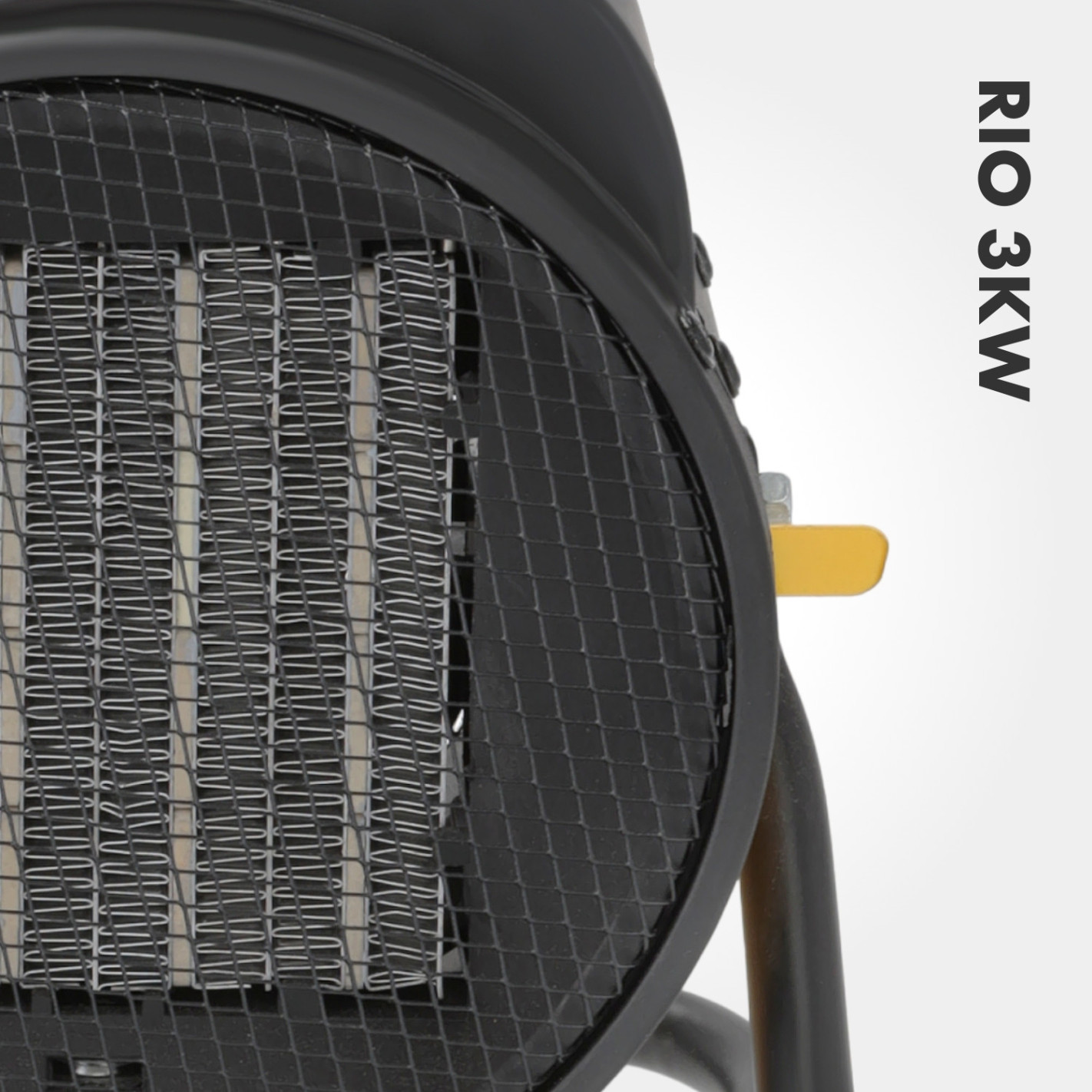 Step up the output without stepping up the size. The RIO 3000 W brings PTC heating power to spaces up to 30 m² in a compact, portable unit that's equally at home in a workshop, garage, office, or living room.