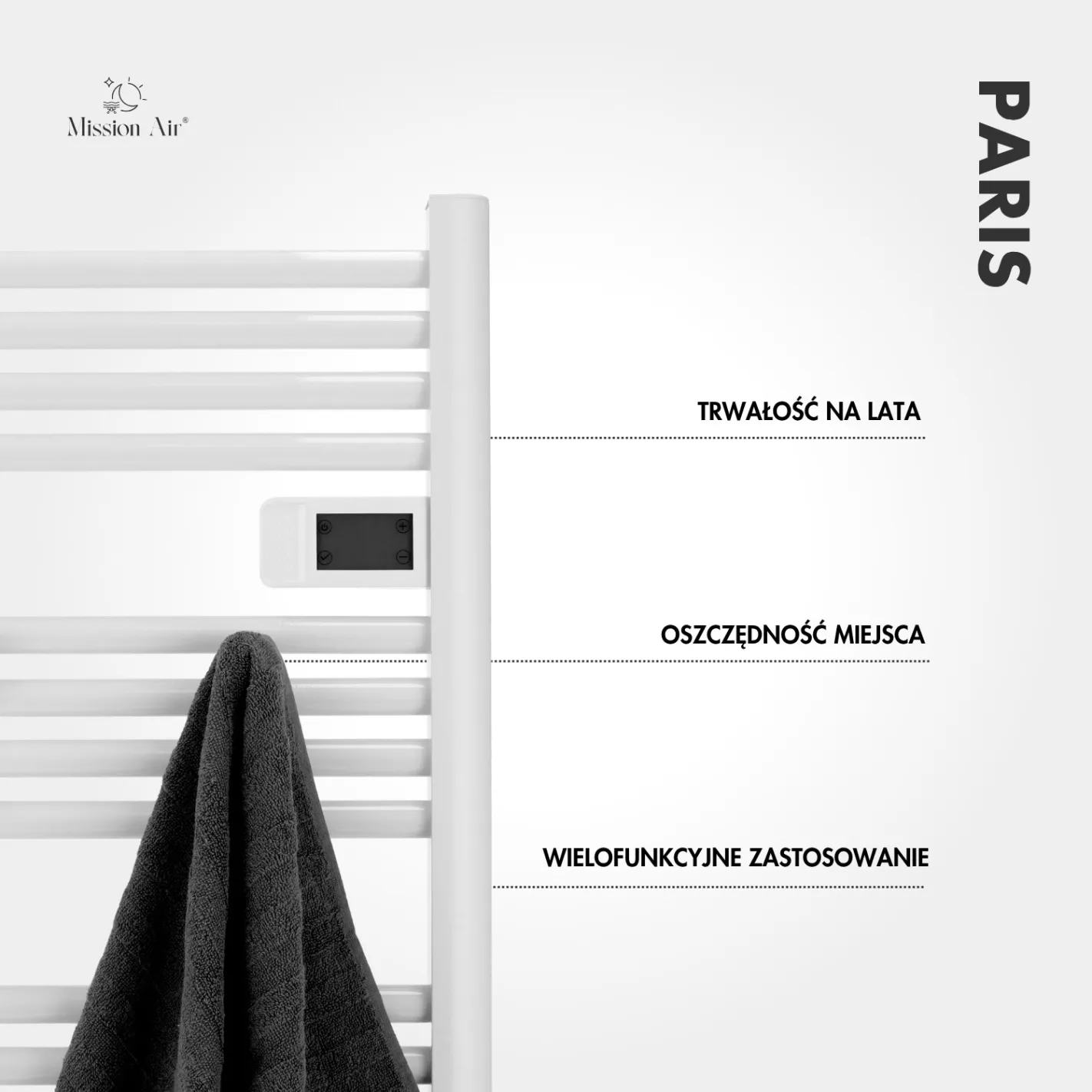 The simplest upgrade your towel radiator can get. The Mission Air hook set adds instant hanging space for towels, robes, and laundry — making drying easier and keeping the bathroom that bit more organised every day.