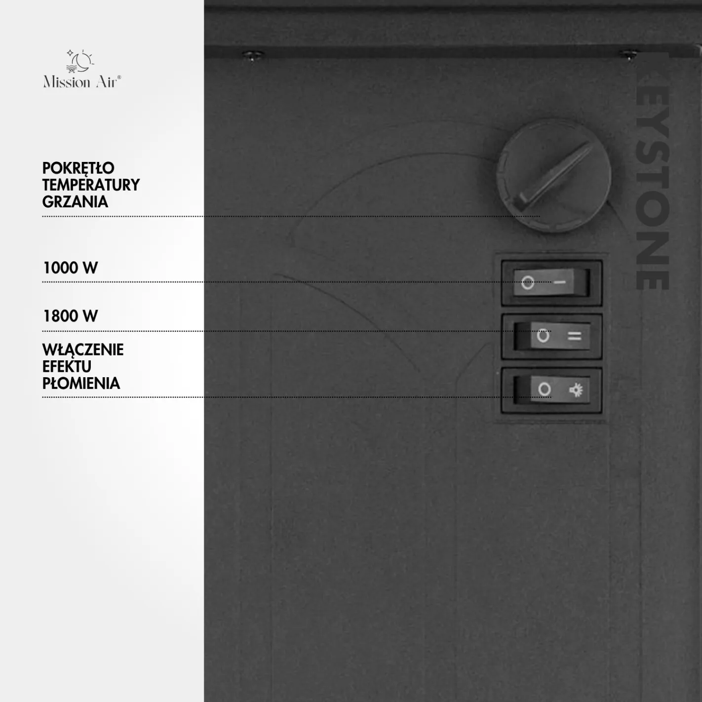 KEYSTONE 1800 W Electric Fireplace | LED Flame Effect, Black