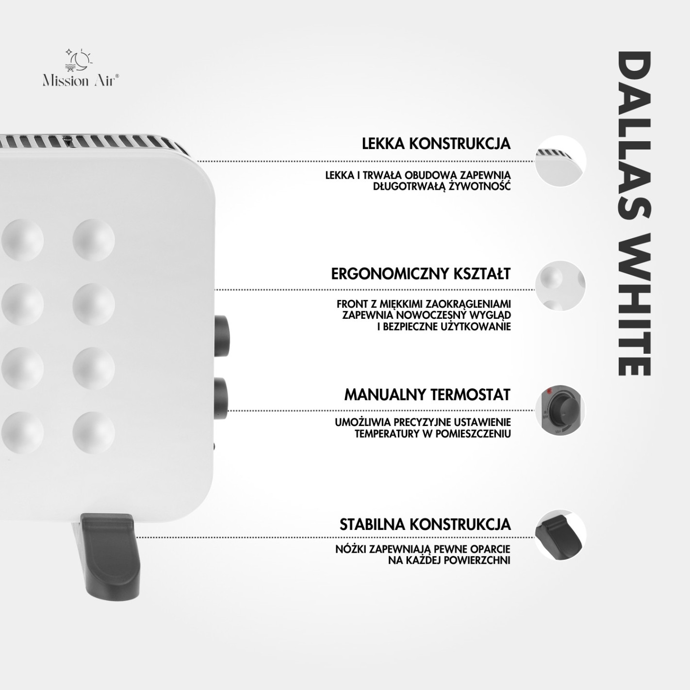 DALLAS 2000 W Convector Heater | Thermostat, Quiet Operation, White