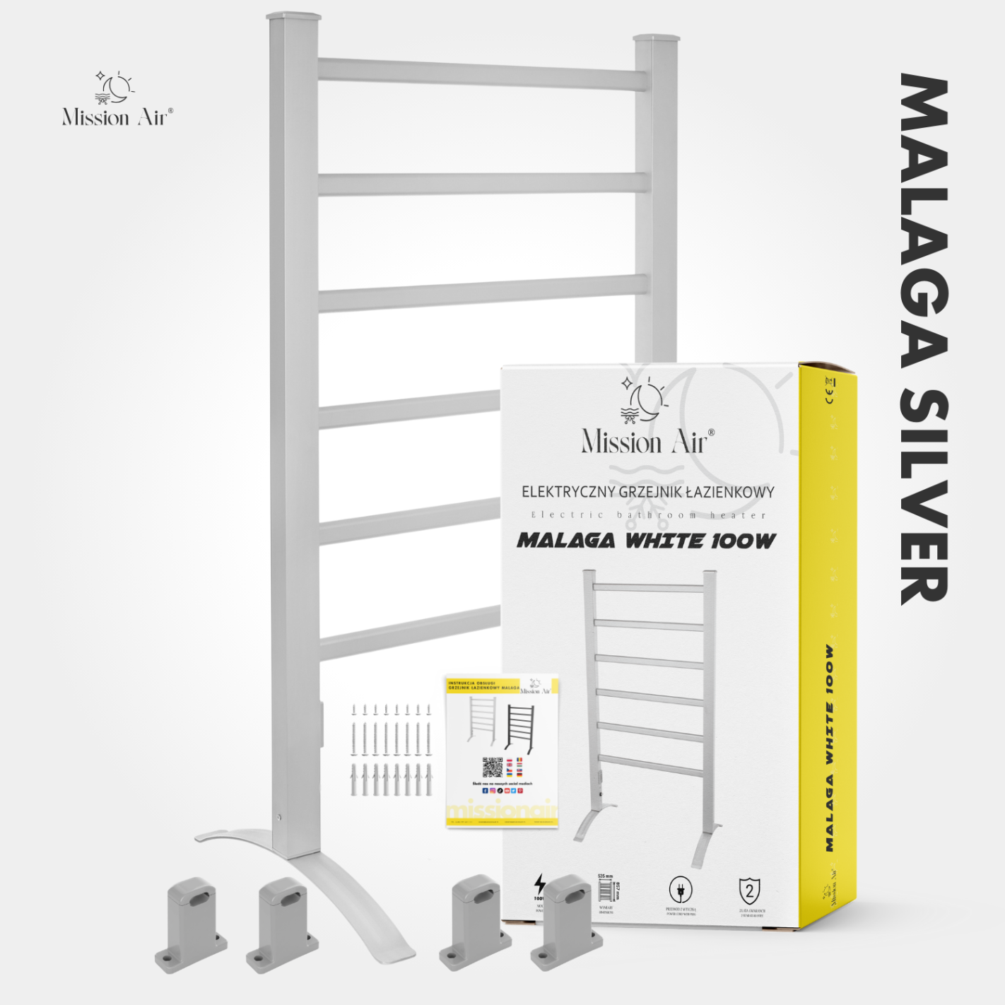 MALAGA SILVER 100 W Bathroom Ladder Heater | Electric, IP24, 2-in-1