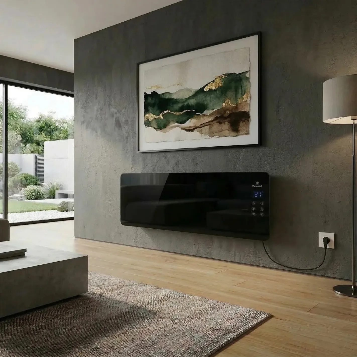 The most powerful model in the PORTO Black series, designed to heat large interiors with ease. Its elegant glass front and slim profile make it a stylish feature in modern living spaces. With built-in WiFi (Tuya) and a clear LCD display, you can easily manage temperature, timers, and weekly schedules. Eco and Comfort modes help control energy consumption and adapt heating power to changing conditions.