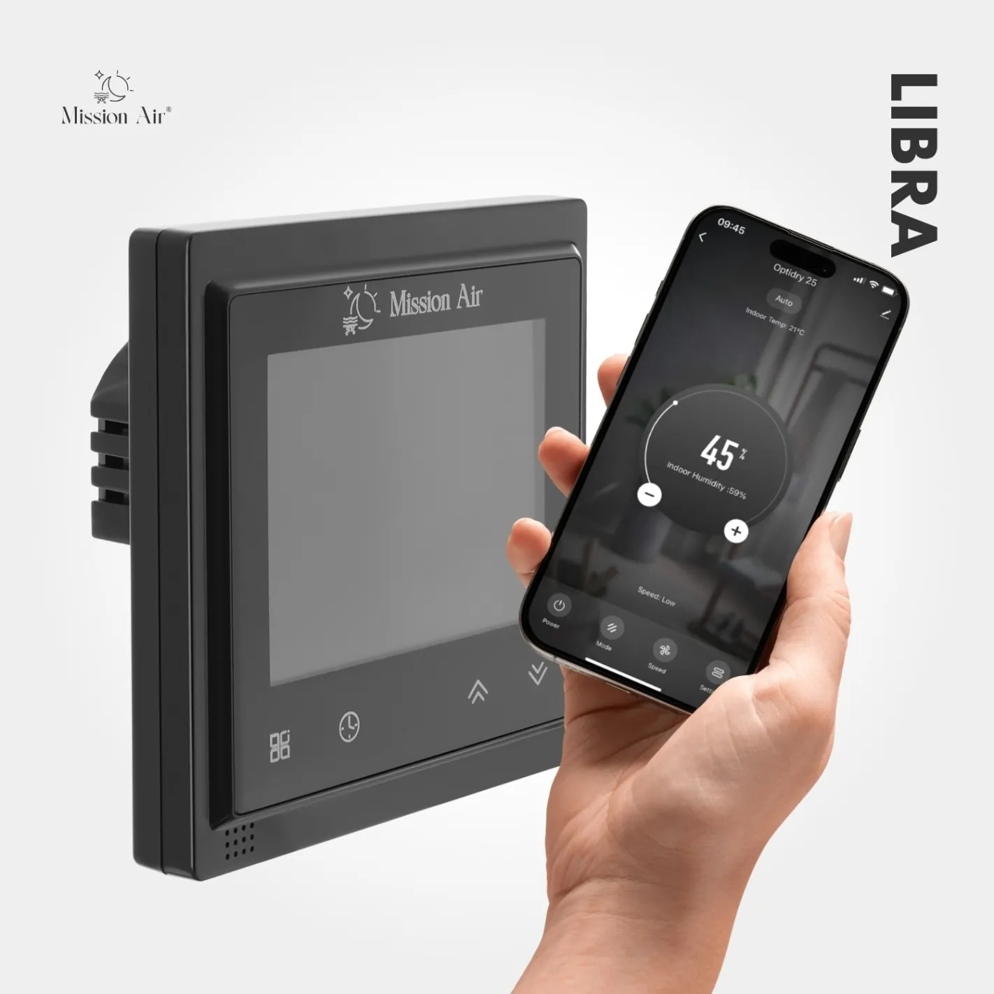 LIBRA w kolorze czarnym łączy minimalistyczny design z zaawansowaną technologią, pozwalając na komfortowe i energooszczędne zarządzanie ogrzewaniem każdego dnia.