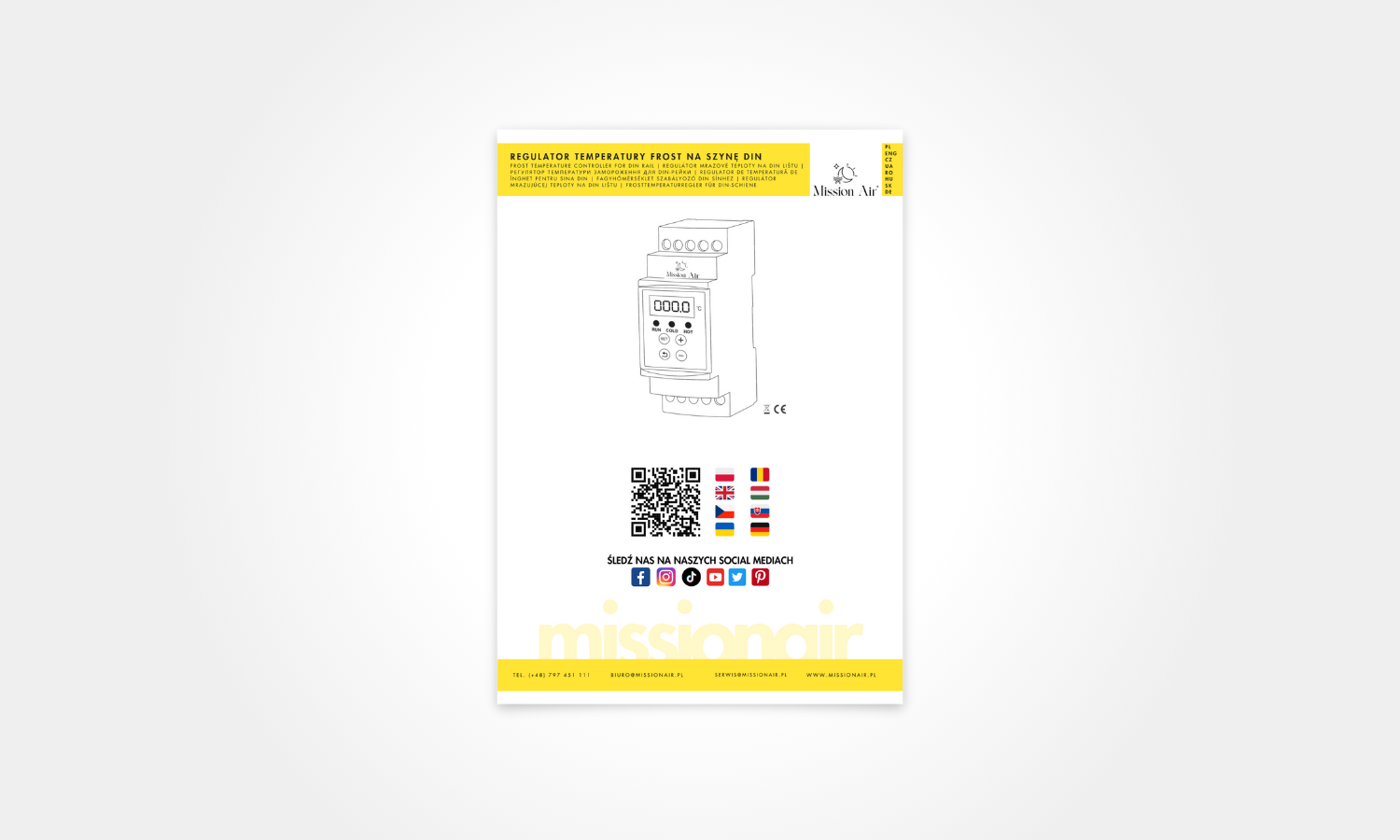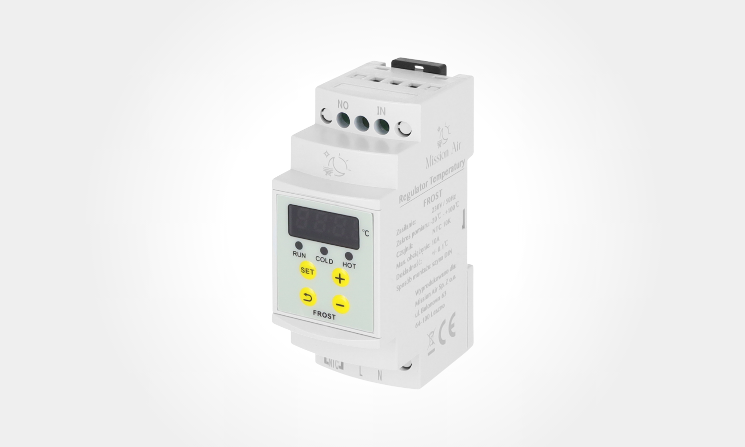 Mission Air FROST to precyzyjny regulator temperatury przeznaczony do montażu na szynie DIN. Obsługuje szeroki zakres od -20 °C do 100 °C, co czyni go uniwersalnym rozwiązaniem do instalacji grzewczych, chłodniczych i przemysłowych.