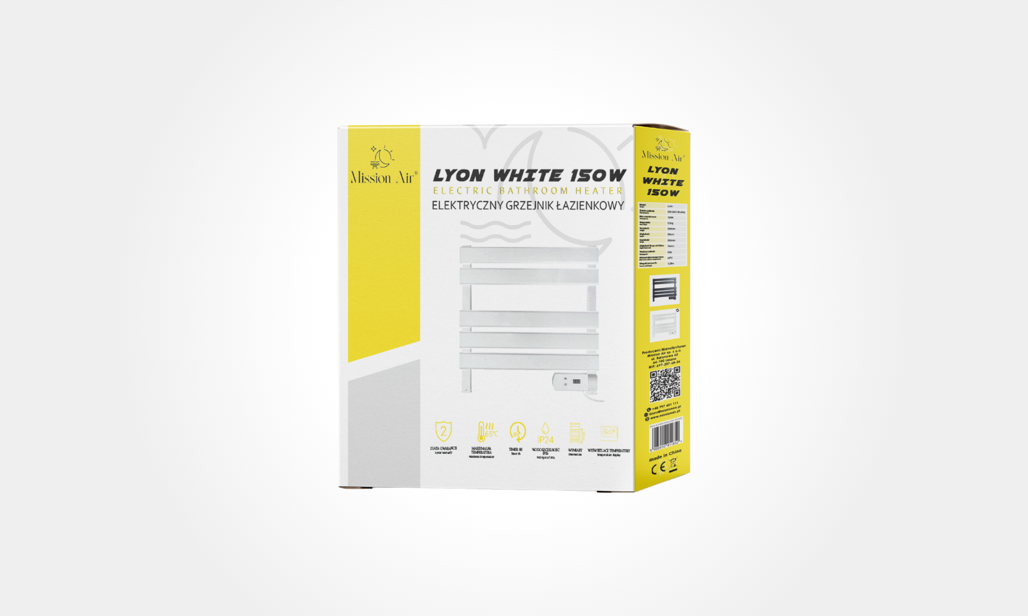 Ochrona IP24 i zabezpieczenie przed przegrzaniem gwarantują bezpieczne użytkowanie. Lyon 150 W w wersji białej to eleganckie i funkcjonalne rozwiązanie, które doda Twojej łazience stylu i komfortu każdego dnia.
