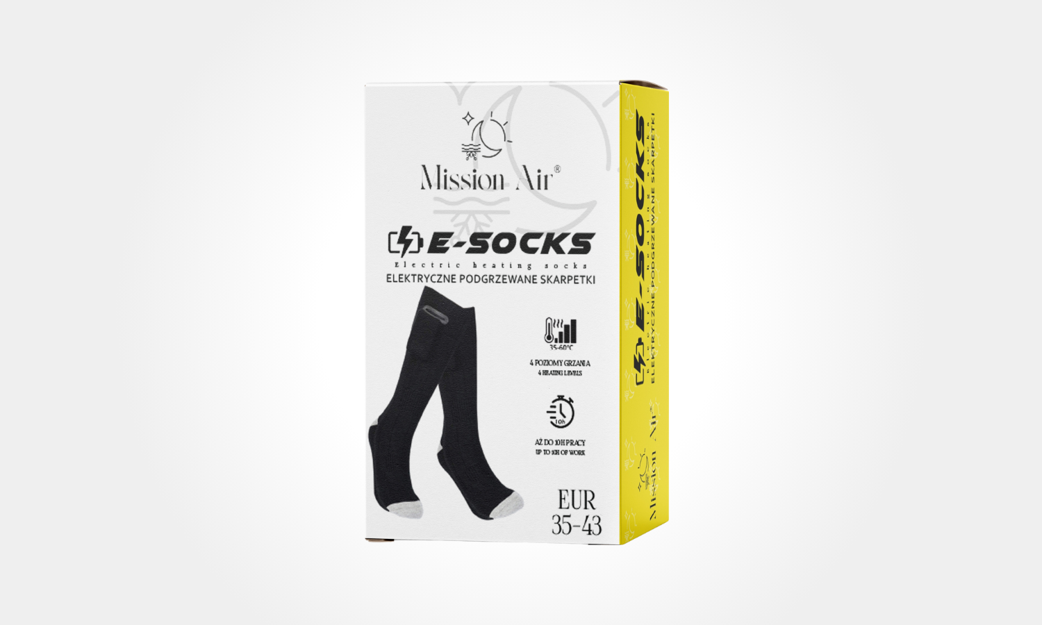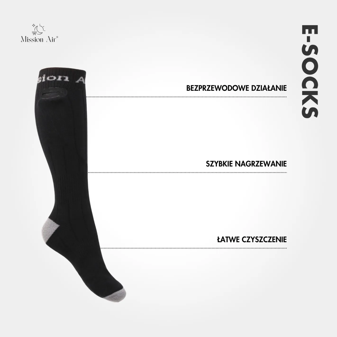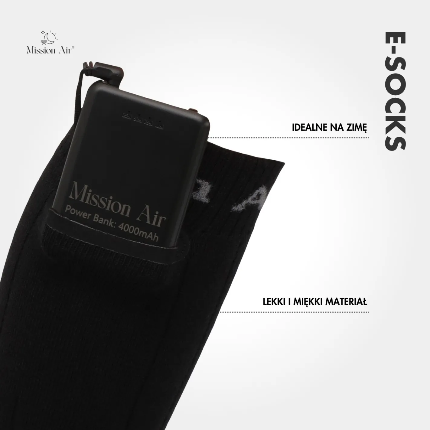 E-SOCKS to podgrzewane skarpetki Mission Air, które skutecznie chronią stopy przed zimnem nawet do -10 °C. Zasilane przez USB, zapewniają długotrwałe ciepło w każdych warunkach – od zimowych spacerów po jazdę na nartach.