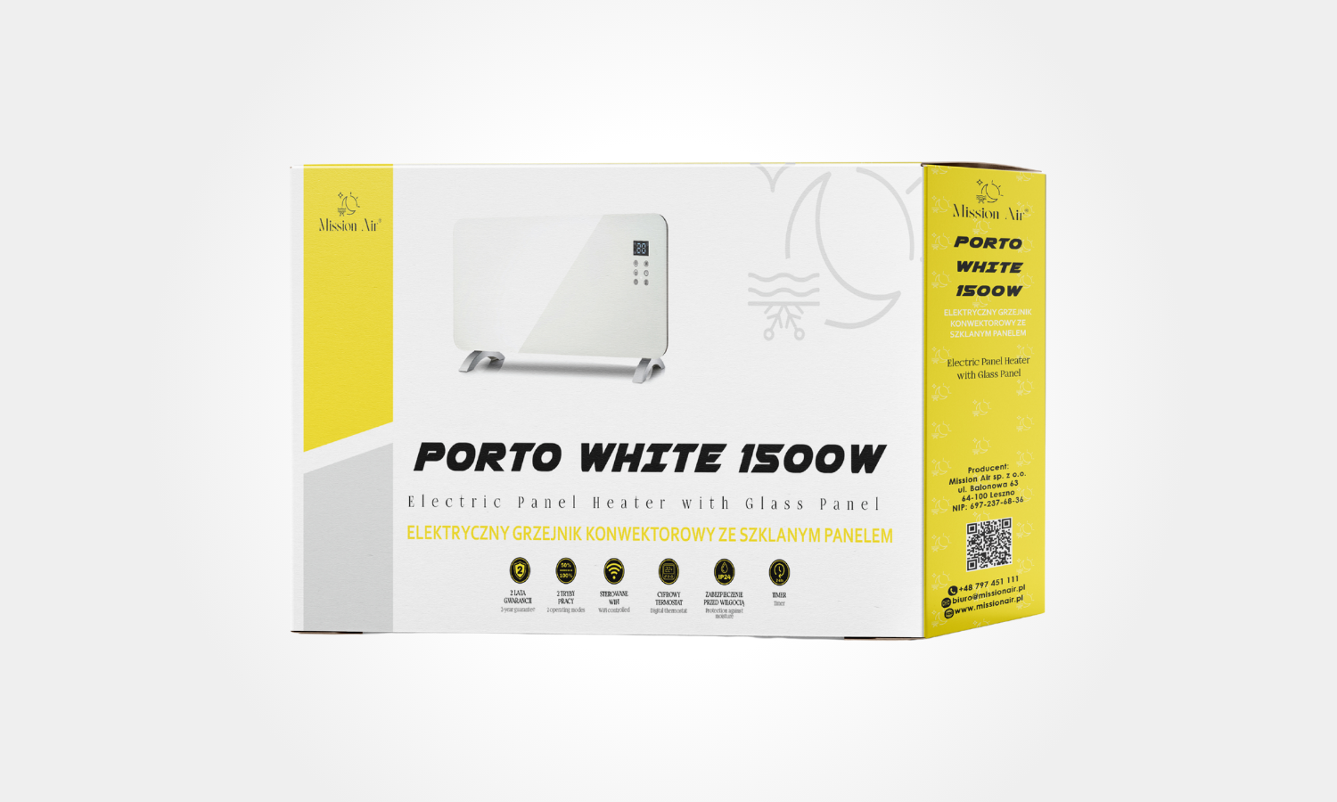 Ochrona IP24, blokada rodzicielska i zabezpieczenie przed przegrzaniem gwarantują bezpieczną eksploatację. PORTO 1500 W to połączenie stylu i funkcjonalności, które wprowadzi do Twojego domu komfort cieplny i oszczędność.