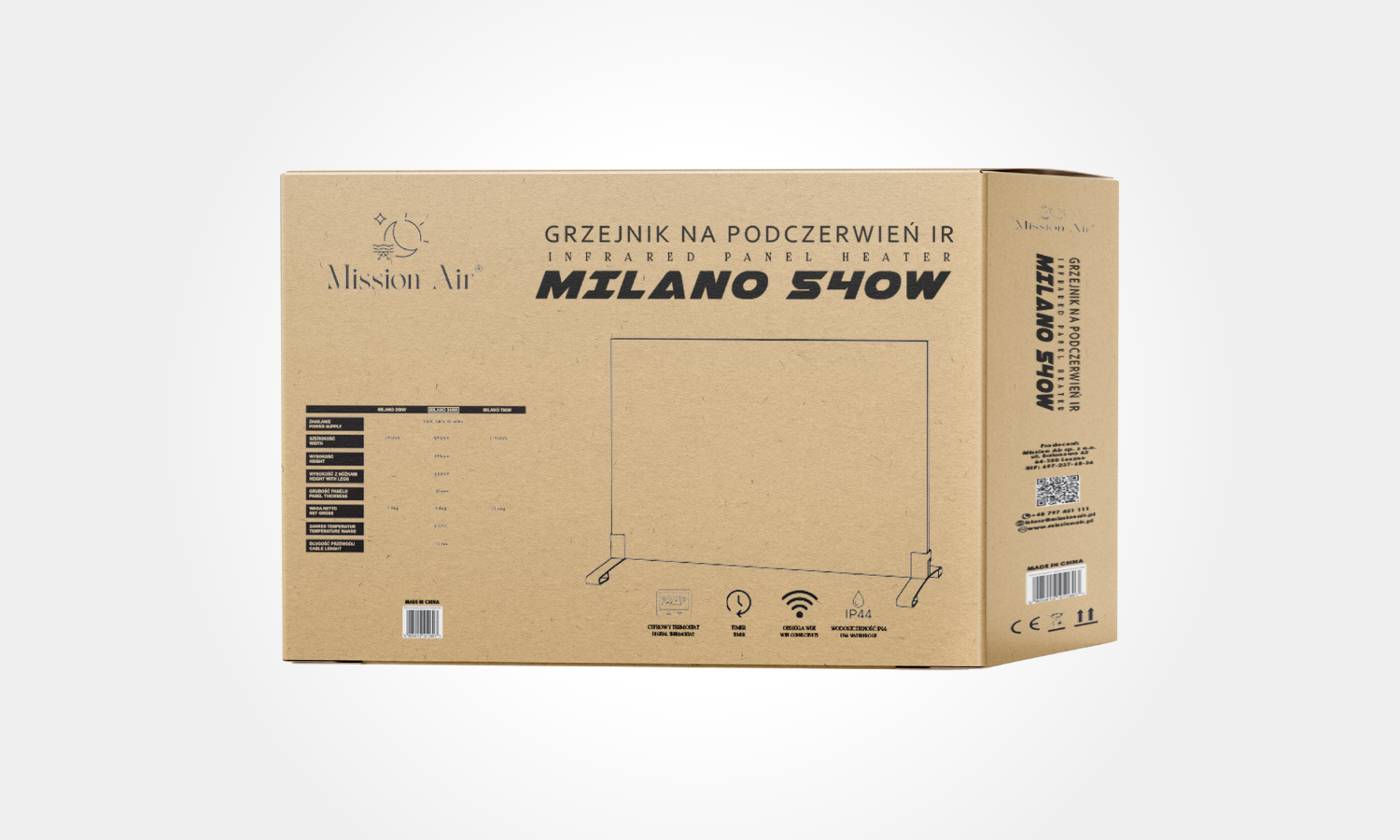 MILANO 540 W to energooszczędny grzejnik na podczerwień, idealny do średnich pomieszczeń o powierzchni do ok. 15 m². Oferuje natychmiastowe źródło ciepła – promieniowanie IR ogrzewa ciało i przedmioty, eliminując konieczność nagrzewania całego powietrza.