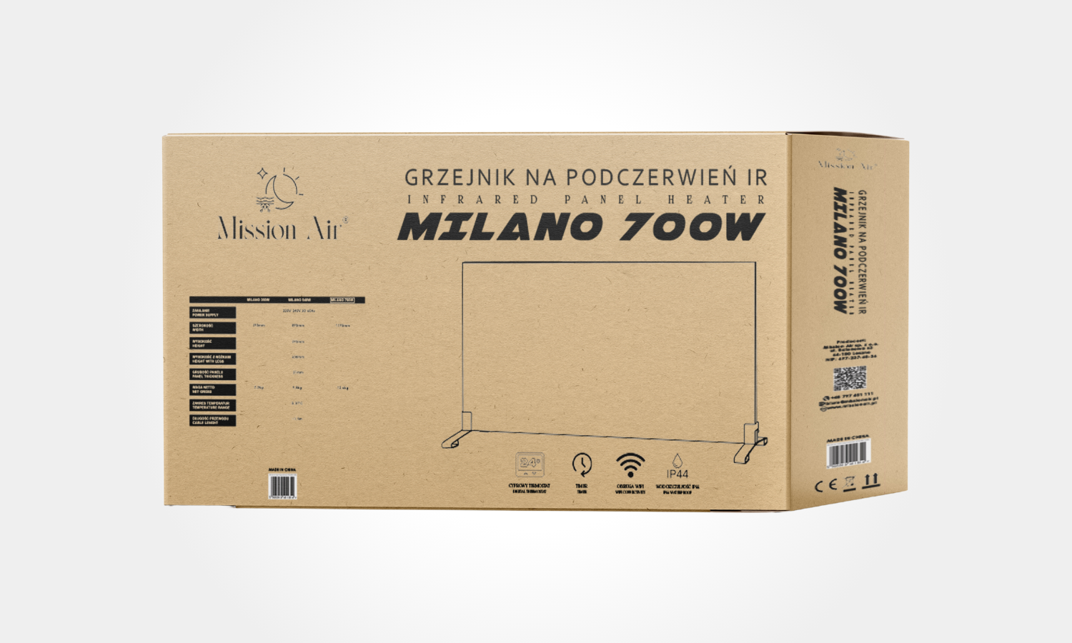 Mission Air MILANO 700 W to najmocniejszy model w tej serii, który sprawdzi się w pomieszczeniach do 20 m². Dzięki technologii podczerwieni zapewnia szybkie, równomierne ciepło odczuwalne natychmiast po włączeniu.