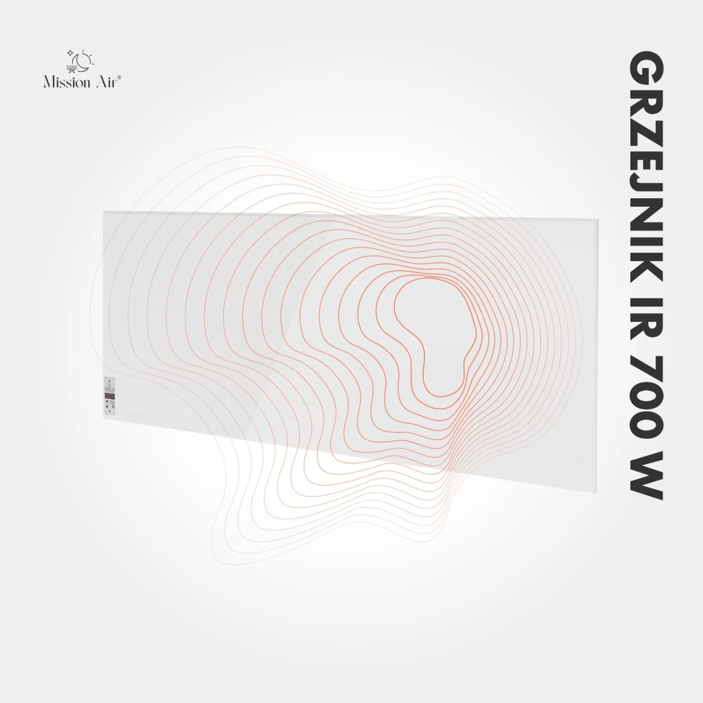 IR 700 W zapewnia szybkie, naturalne ciepło w średnich pomieszczeniach. Fala podczerwieni ogrzewa bezpośrednio ciało i powierzchnie, bez hałasu i przeciągów.