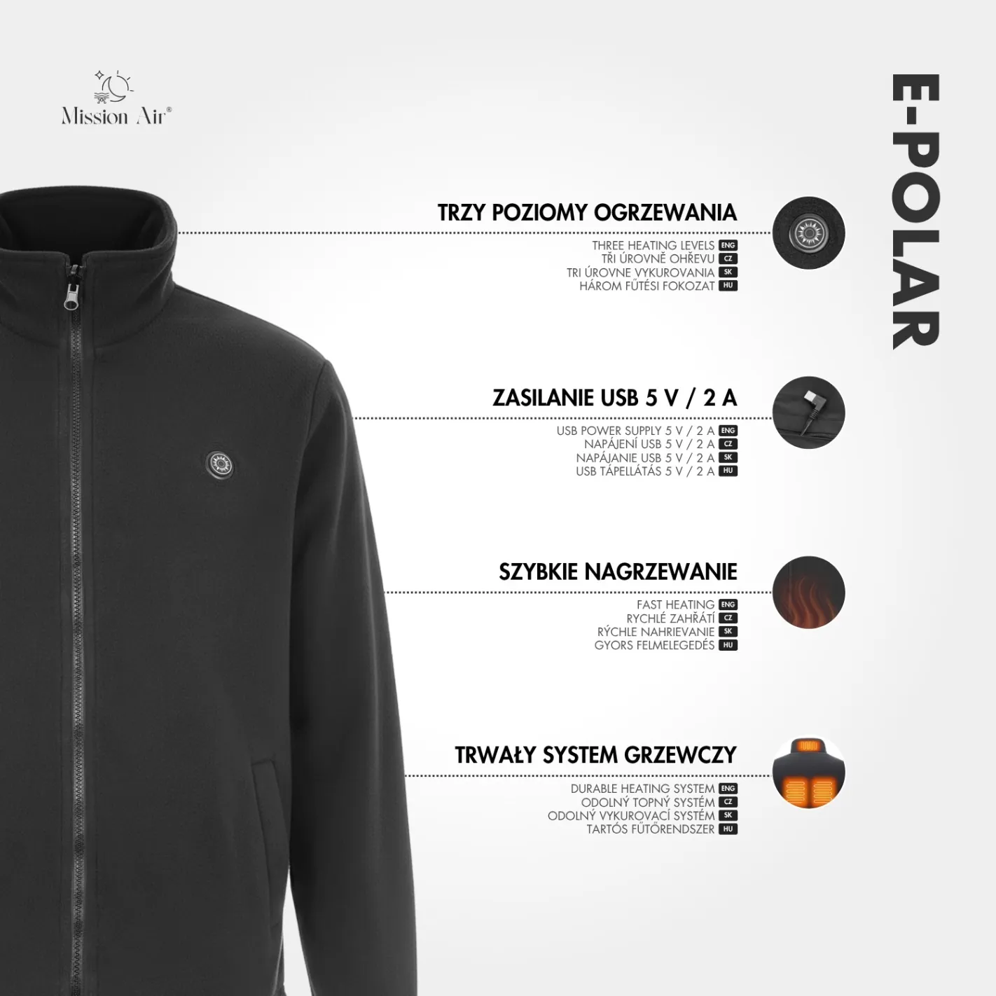 E-POLAR łączy funkcjonalność odzieży polarowej z nowoczesną technologią grzewczą, oferując komfort cieplny, wygodę i praktyczność w jednym rozwiązaniu.