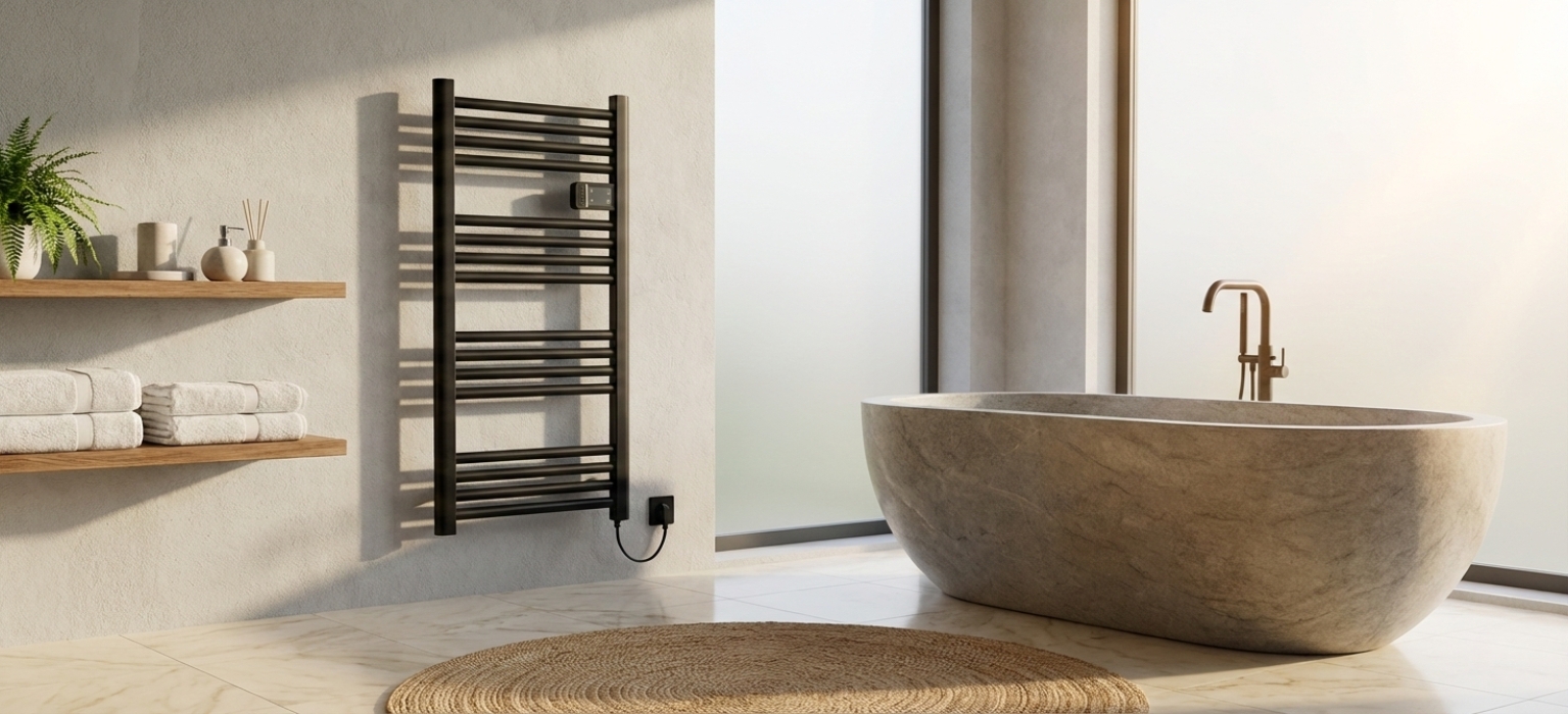 Paris 500 W to nowoczesny grzejnik drabinkowy, który łączy funkcję ogrzewania łazienki z wygodnym suszeniem ręczników. Smukła aluminiowa konstrukcja w eleganckiej czerni nadaje wnętrzu styl, a kompaktowe wymiary sprawiają, że idealnie pasuje nawet do mniejszych pomieszczeń.