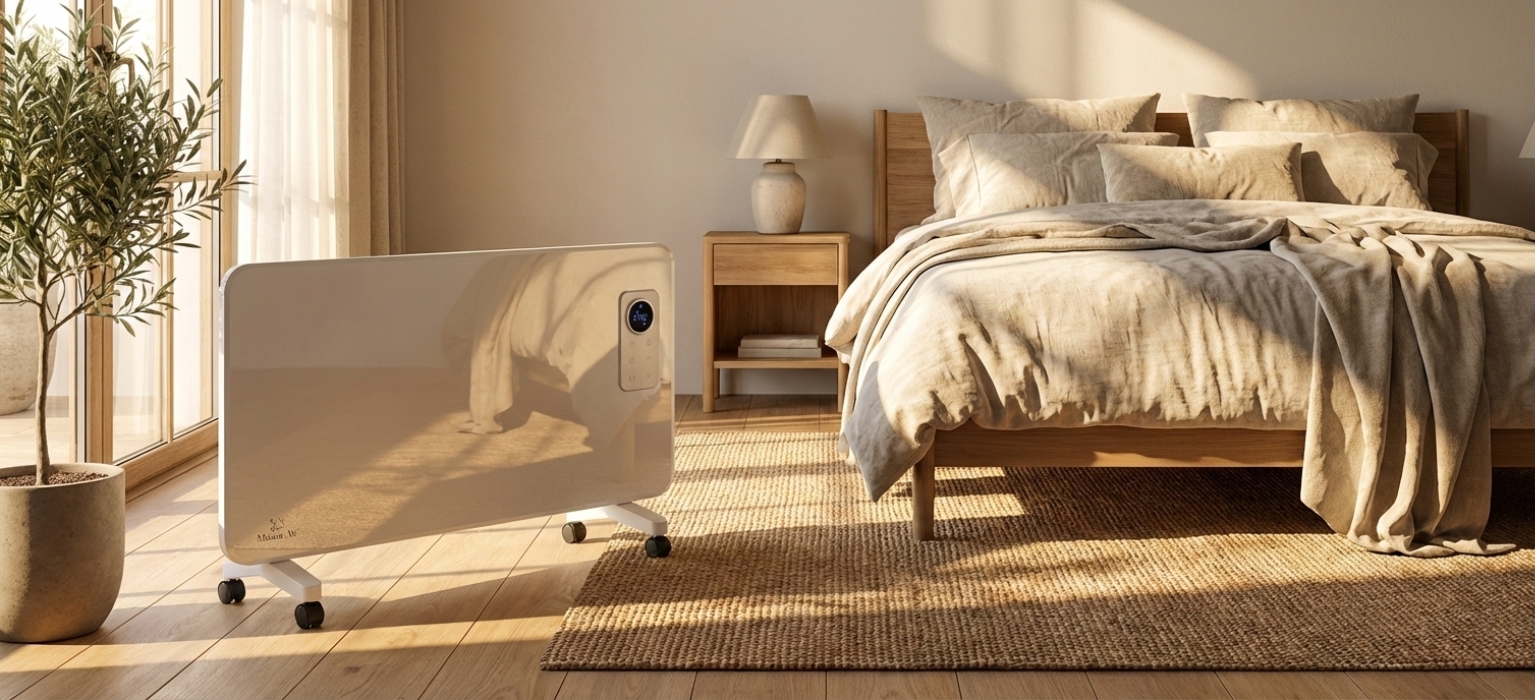 Zaawansowany element grzewczy X-shape zapewnia szybkie nagrzewanie i równomierne rozprowadzanie ciepła. Elektroniczny termostat i 24-godzinny timer umożliwiają precyzyjne zarządzanie temperaturą oraz optymalizację zużycia energii.