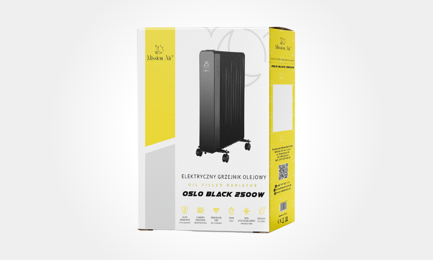 Najmocniejszy w serii OSLO Black – model 2500 W – doskonale sprawdzi się w dużych pomieszczeniach. Dzięki 11 żebrom nagrzewa wnętrza równomiernie, a olejowa technologia dba o utrzymanie ciepła jeszcze po wyłączeniu urządzenia.