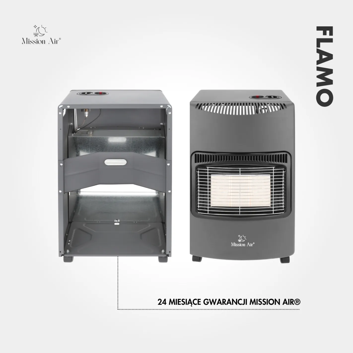 Mission Air FLAMO dostarcza mocne, szybkie ciepło tam, gdzie jest najbardziej potrzebne. Dzięki trzem poziomom mocy i wydajnemu palnikowi ceramicznemu pomieszczenia nagrzewają się w kilka chwil.