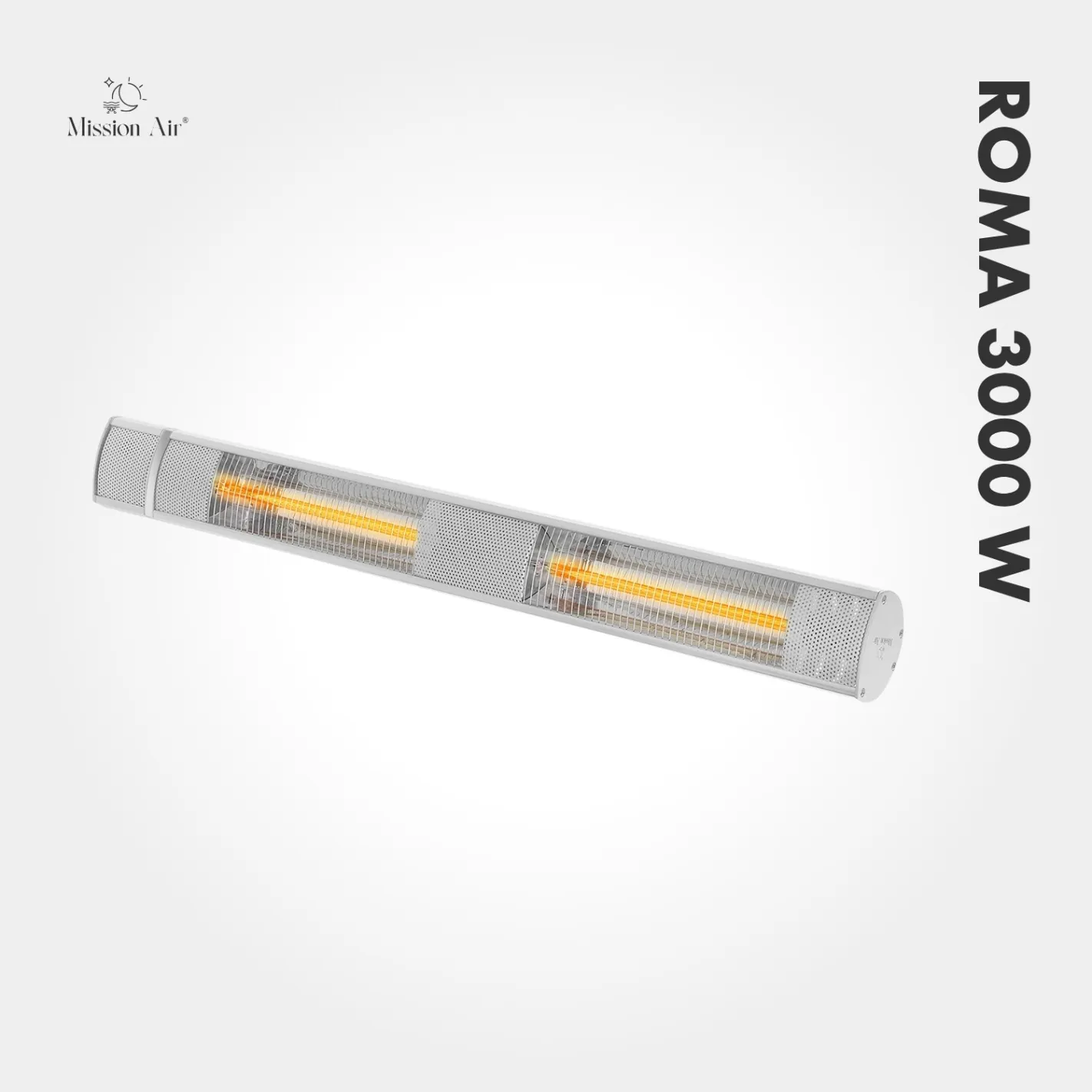 ROMA 3000 W to najmocniejszy promiennik tarasowy Mission Air, który dzięki technologii podczerwieni IR natychmiast ogrzewa przestrzeń zewnętrzną. Moc 3 kW pozwala efektywnie dogrzać tarasy, ogrody zimowe i altany.