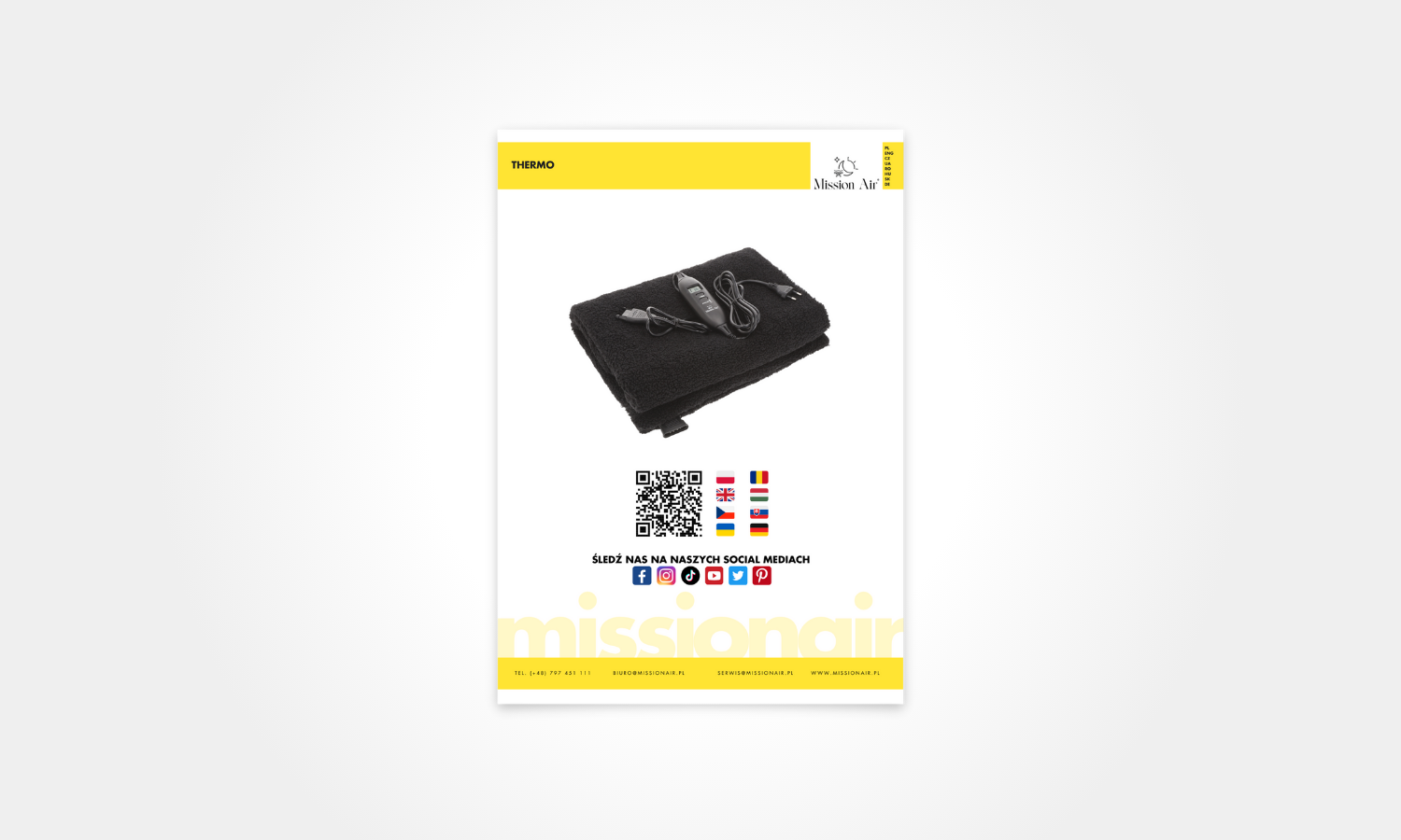 Mission Air THERMO to mata grzewcza o wymiarach 40×120 cm, zaprojektowana do ogrzewania siedziska i oparcia krzesła. Zasilana przez USB, idealnie sprawdza się w domu i w biurze.