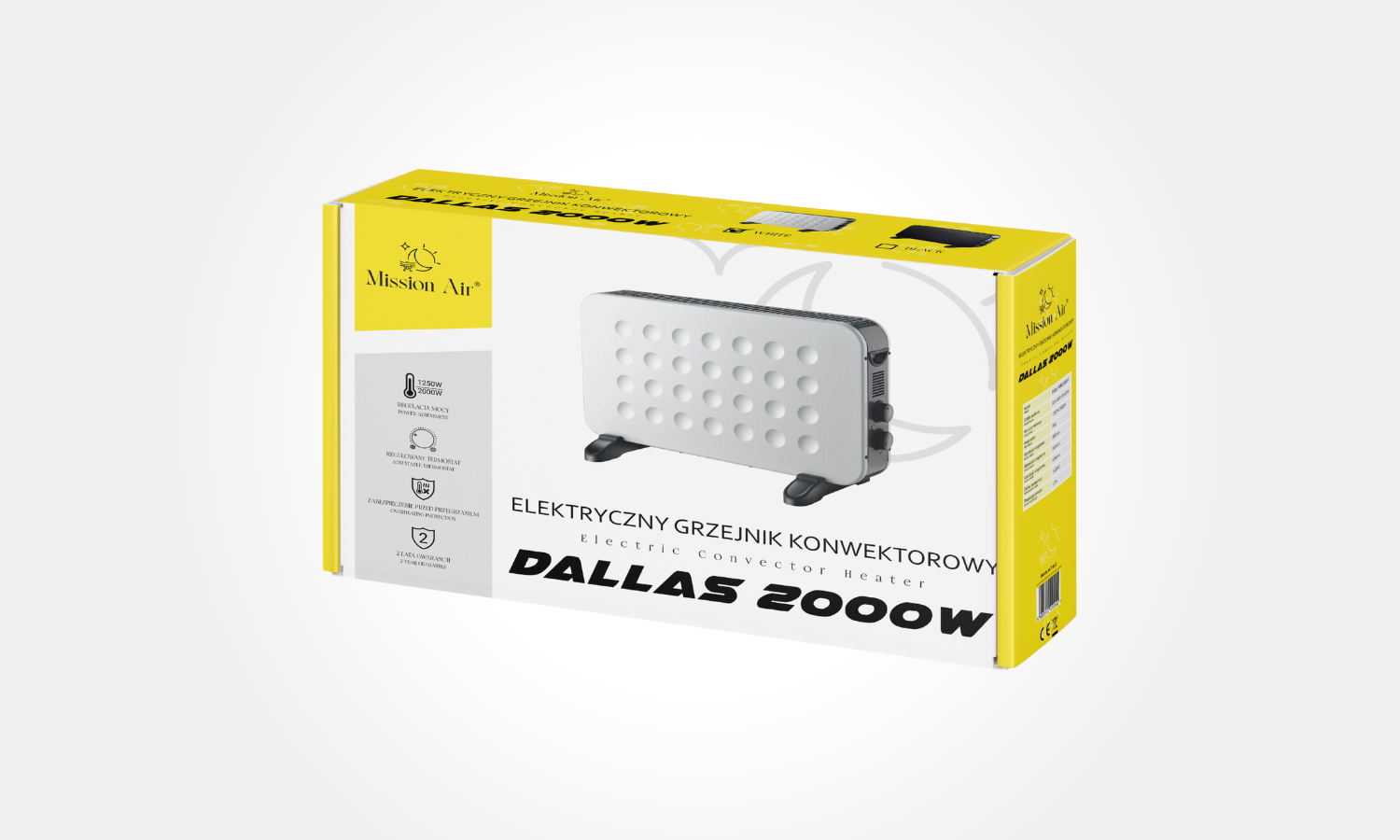 DALLAS 2000 W to wydajny grzejnik konwektorowy zaprojektowany do szybkiego, równomiernego nagrzewania pomieszczeń mieszkalnych i biurowych. Łączy moc 2000 W z lekką, minimalistyczną konstrukcją w białym wykończeniu.